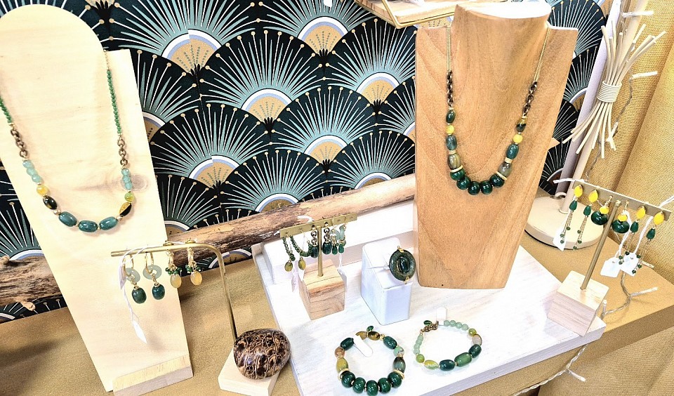 Sur Labège sont confectionnés des bijoux teintés au pastel bleu de Toulouse qui sont également présents toute l'année.